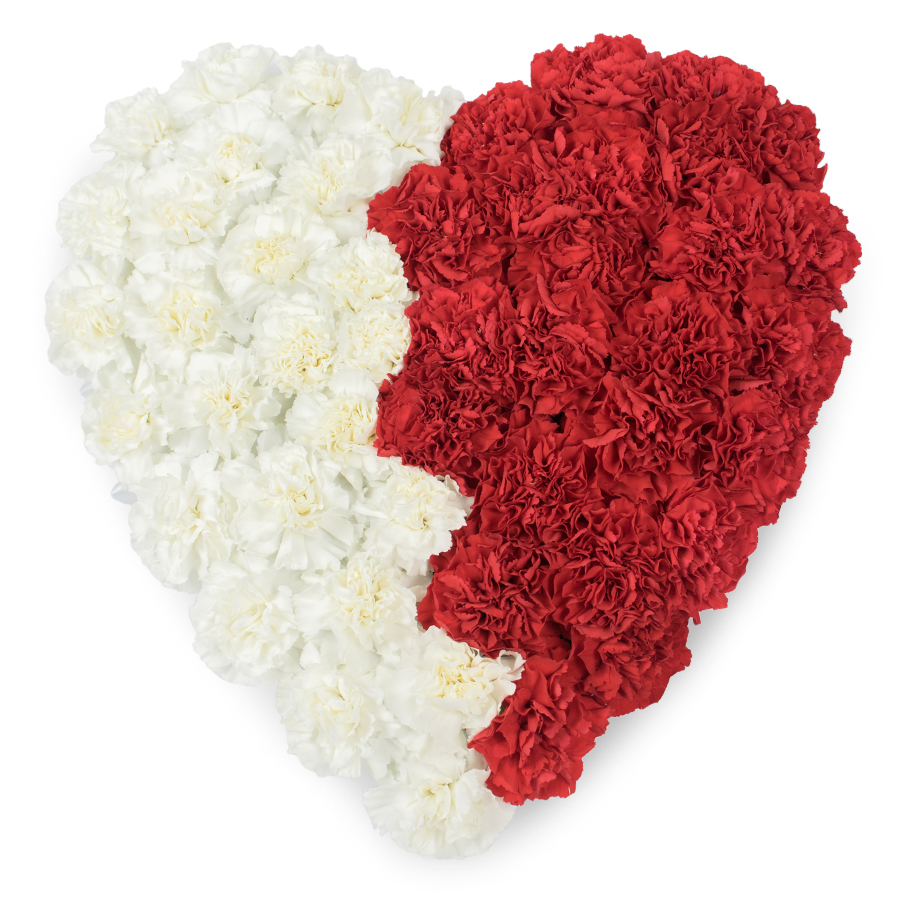 Introducing our Heartfelt Mixed Carnations bouquet, a visually stunning arrangement combining pristine white and vibrant red carnations, expertly designed to express your deepest sympathies.
